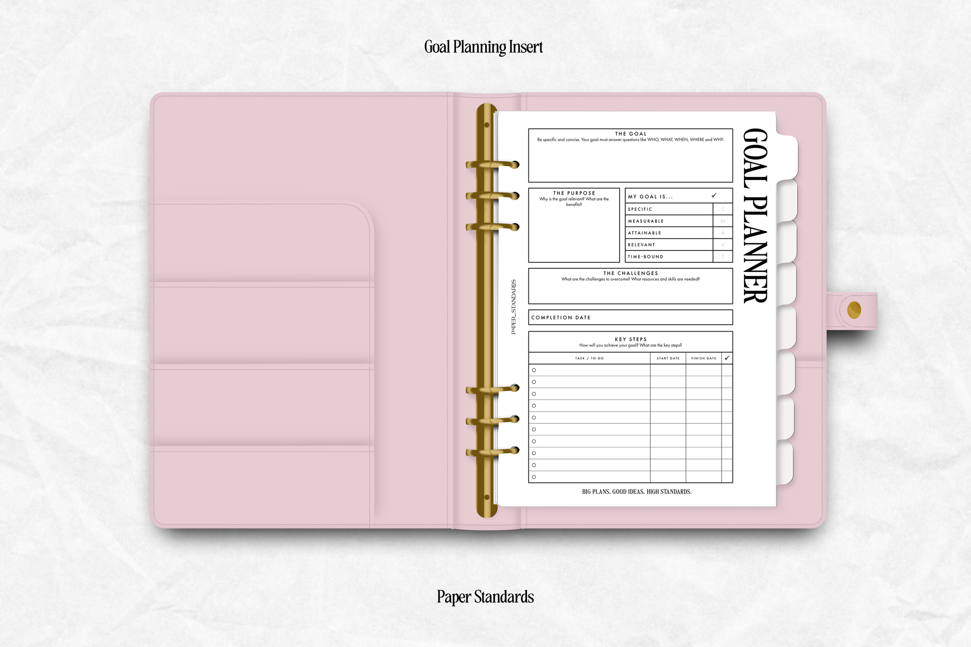 Achieve success by setting SMART goals and making well-defined plans with our Goal Planning Insert! Map out monthly or project-based objectives and track them easily -- making sure your goals remain top-of-mind.