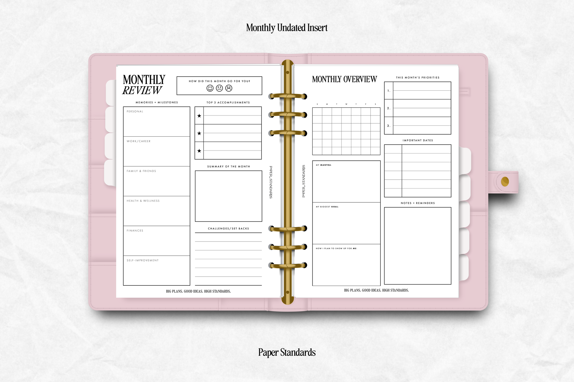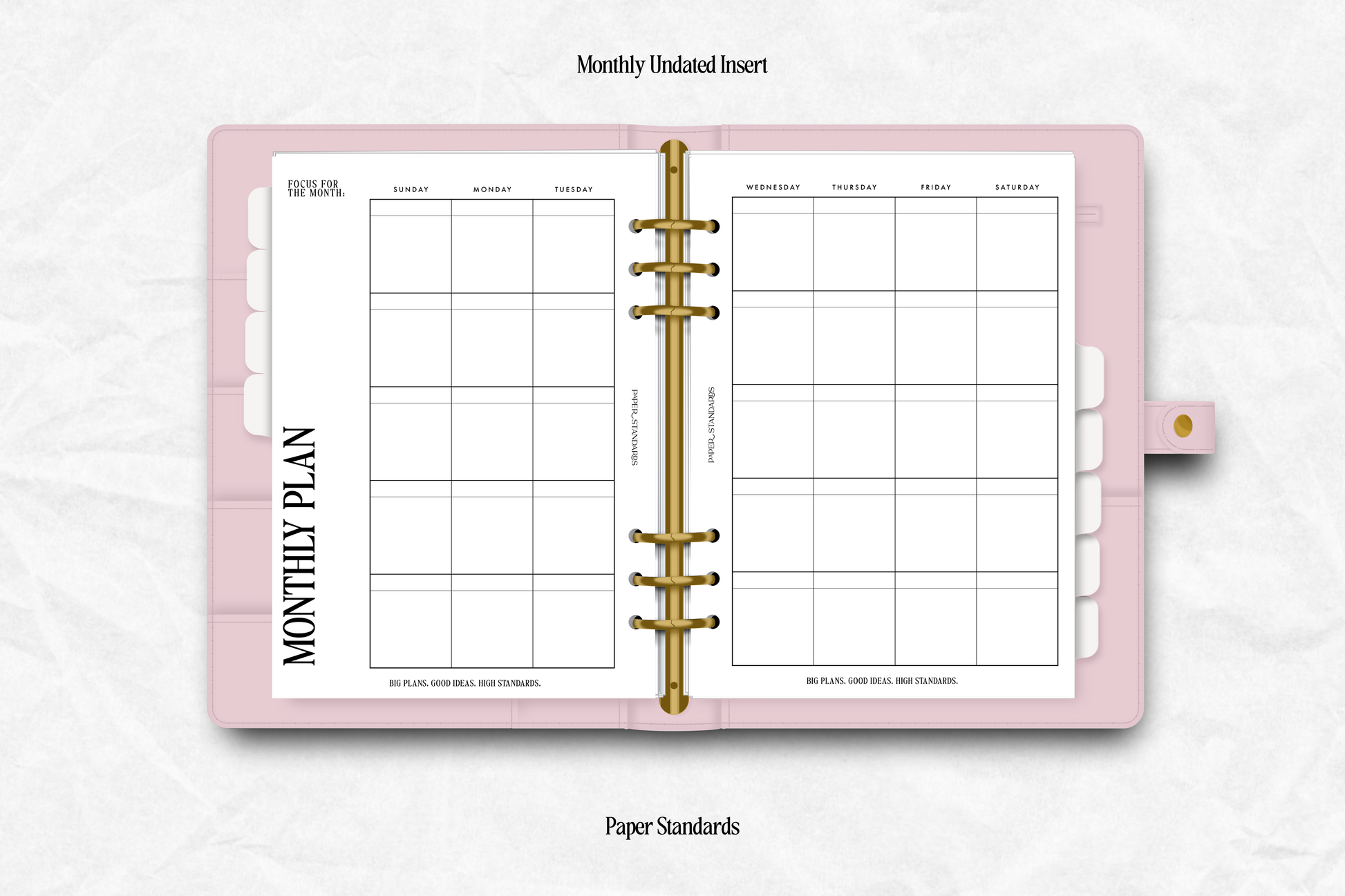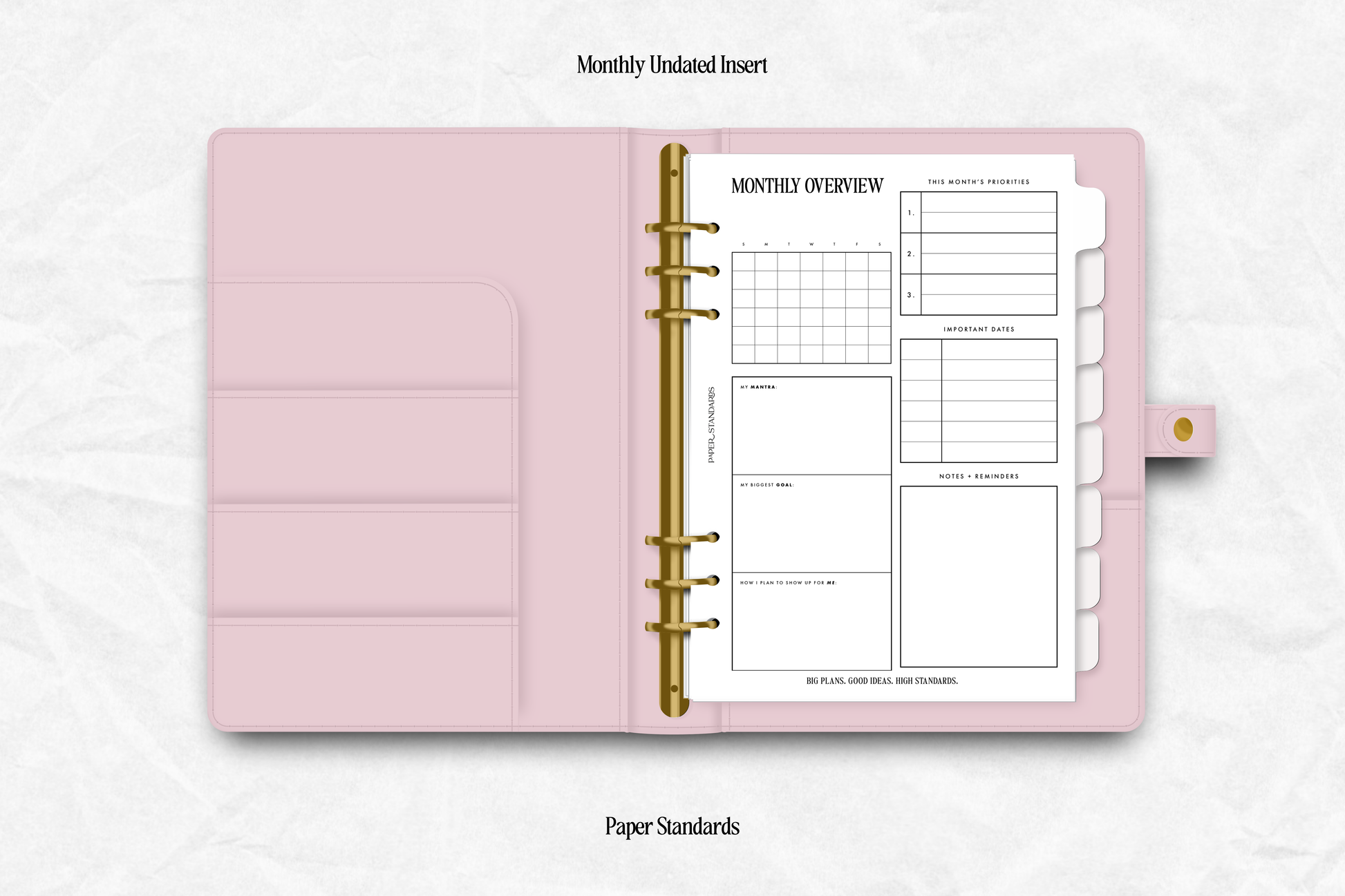 Enjoy the freedom to begin and end your planning as desired! The Monthly Undated Insert requires no long-term commitment, but it can make a huge difference once you get into a routine that works best for you.
